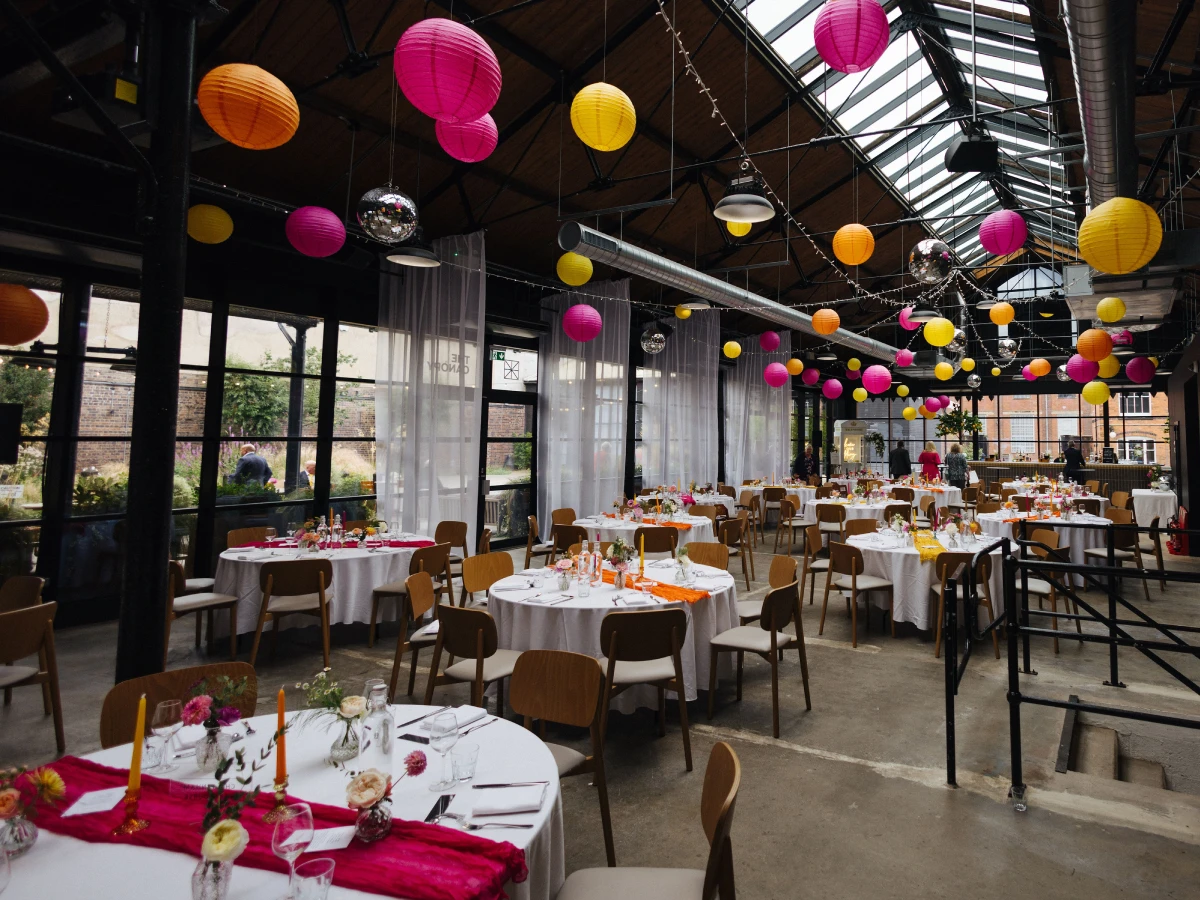 This vibrant wedding was all about joy and bold colour. Using a palette of hot pink, yellow, and orange, we transformed the venue into a playful, modern celebration.